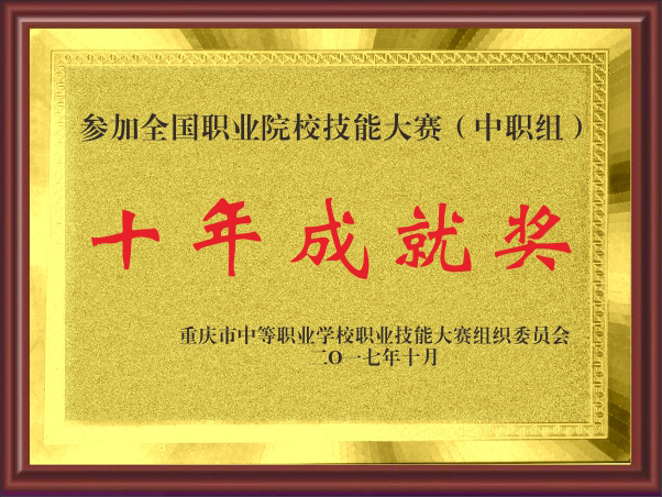 近年来,学校获得“全国先进办学单位”“全国教育信息化示范基地”“全国职业院校技能大赛(中职组)十年成就奖单位”等国家级荣誉16项,获得重庆市教育系统“先进党组织”“重庆五一劳动奖状”等市级荣誉60多项,连年获得合川区教育系统绩效考核一等奖。