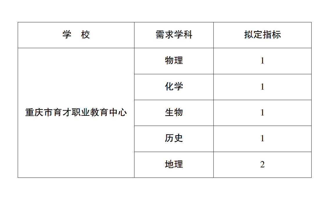 根据学校发展需求,重庆市育才职业教育中心拟招聘9名在编教师,其中2025年应届高校毕业生3名,应届公费师范生6名,具体如下: